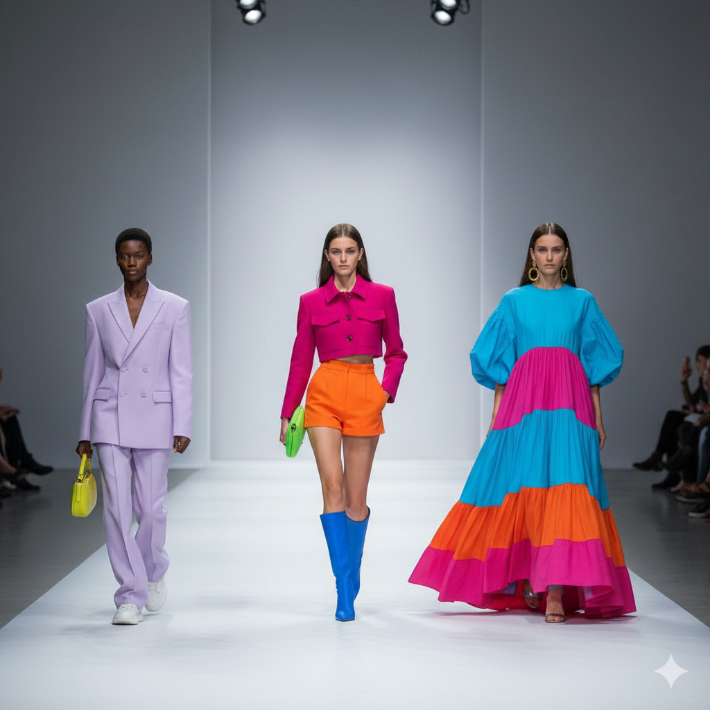 This year, designers are bringing dopamine dressing into structured tailoring and everyday wear, making it both wearable and work-appropriate.
