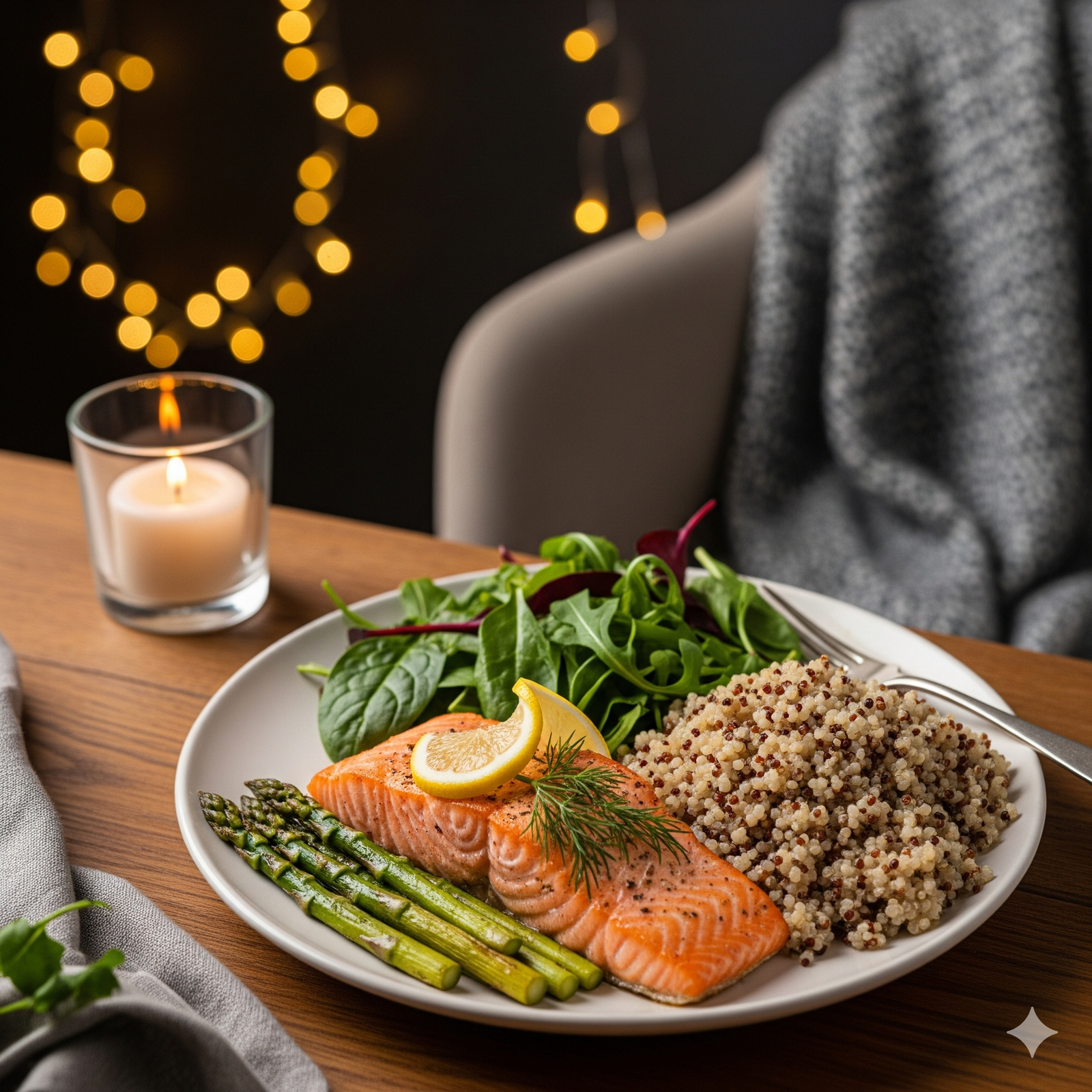 | Evening | 20-min walk outdoors | Light dinner with salmon + veggies |